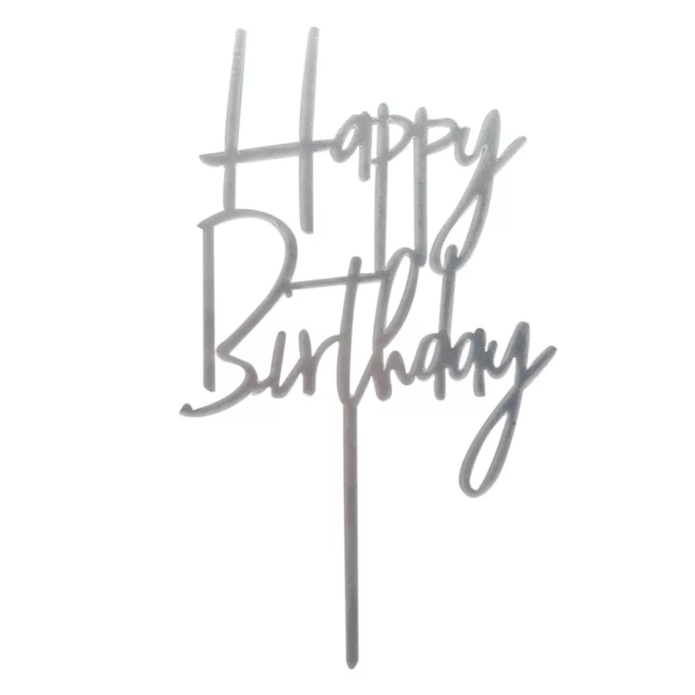 Ezüst „Happy Birthday” Felirat – Ünnepi kiegészítő stílusosan